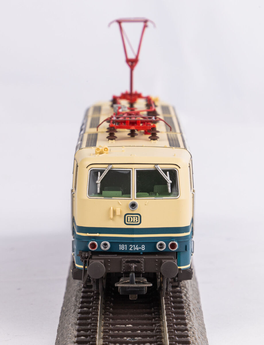 Neuheit 2022: Variante der BR 181.2 der DB mit Bedruckung Mosel der Epoche IV. Das PIKO Modell der wichtigen Mehrsystem-Lokbaureihe 181.2 zeigt alle relevanten Details seines Vorbildes auf und überzeugt durch feinste Lackierung und Bedruckung, erhabene Namensschilder auf den Seiten, extra angesetzte Frontgriffe und Türgriffstangen, scharf gravierte Drehgestellblenden, feine Isolatoren und Stromabnehmer mit unterschiedlichen Schleifstücken. Die Beleuchtung erfolgt mittels LEDs. Die serienmäßig eingebaute Führerstands- und Maschinenraumbeleuchtungen sind hierbei wie die fahrtrichtungsabhängig funktionierenden Schlusslichter mit PluX22 Decoder digital schaltbar. Ein starker fünfpoliger Motor mit Schwungmassen, der alle vier Achsen antreibt, sorgt für hervorragende Fahreigenschaften. Das schwere PIKO Modell verfügt über zwei Haftreifen und einen schweren Zinkdruckgussrahmen für große Zugkräfte.