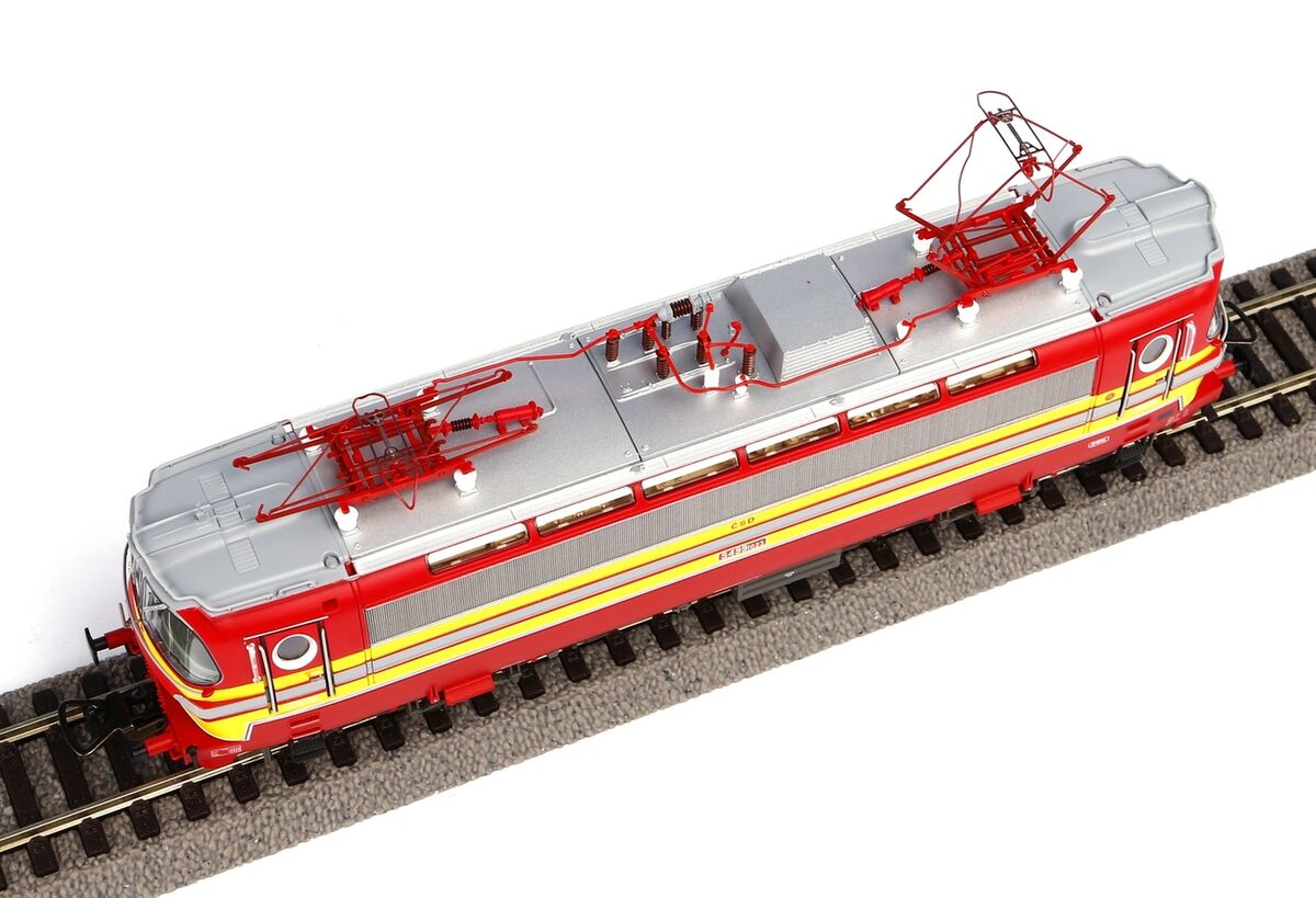 Erstmalig erscheinen die formschönen Maschinen vom Typ Škoda 47E „Laminátka“ als einsatzfähiges Großserienmodell in der Baugröße H0. Die Anmut der Maschine wurde hervorragend in den Maßstab 1:87 übertragen und ein absolut stimmiges Gesamtbild geschaffen. Die vielen attraktiven Details, wie etwa die Oberlichter im Maschinenraum, wurden elegant umgesetzt und die stark gliedernde Linienführung des Lokkastens durch scharfe Gravuren visualisiert. Präzise nachgebildet wurden technische Elemente, wie der Drehgestelle, sie komplettieren die gelungene Formgebung des Modells. Die farbenfrohe Livree des Vorbilds, samt dynamisch wirkender Zierelemente, steht der Lok auch in 1:87 dank aufwendiger Lackierung und Bedruckung ausgezeichnet. Angetrieben wird die Lok durch einen fünfpoligen Motor, dessen gleichmäßiger Lauf durch zwei Schwungmassen perfektioniert wird. Eine mit der Fahrtrichtung wechselnde Beleuchtung in Rot und Weiß ist selbstverständlich vorhanden und in zeitgemäßer LED-Technik ausgeführt. Ab Werk ist ein PIKO SmartDecoder 4.1 mit passendem Fahrzeugsound eingebaut.