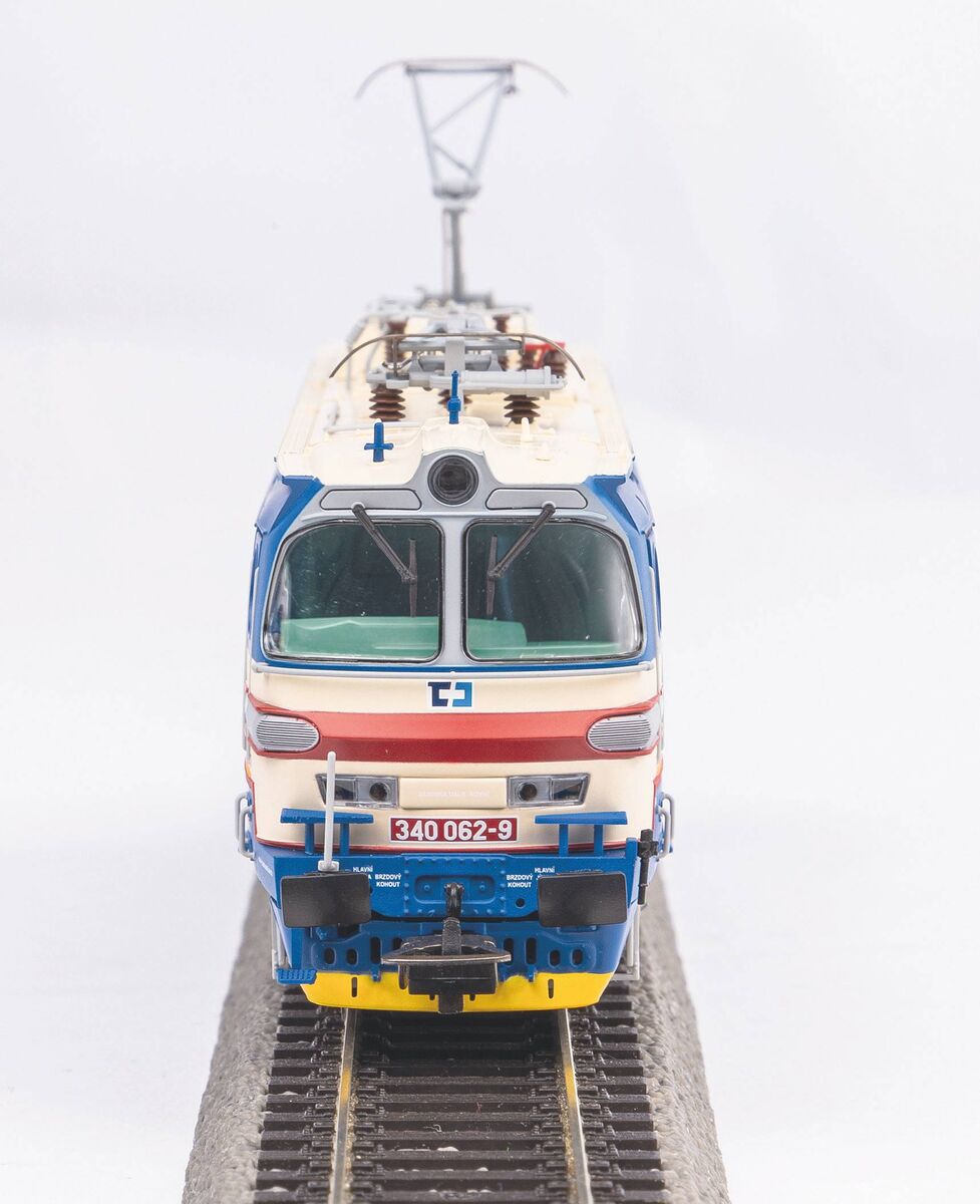 Neuheit 2022: Variante der BR S499 als BR 340 der ČD Cargo in Epoche VI. Die Anmut der formschönen Maschinen vom Typ Škoda 47E „Laminátka“ wurde hervorragend in den Maßstab 1:87 übertragen und ein absolut stimmiges Gesamtbild geschaffen. Die vielen attraktiven Details, wie etwa die Oberlichter im Maschinenraum, wurden elegant umgesetzt und die stark gliedernde Linienführung des Lokkastens durch scharfe Gravuren visualisiert. Präzise nachgebildet wurden technische Elemente, wie der Drehgestelle, welche die gelungene Formgebung des Modells komplettieren. Die farbenfrohe Livree des Vorbilds, samt dynamisch wirkender Zierelemente, steht der Lok auch in 1:87 dank aufwendiger Lackierung und Bedruckung ausgezeichnet. Angetrieben wird die Lok durch einen fünfpoligen Motor, dessen gleichmäßiger Lauf durch zwei Schwungmassen perfektioniert wird. Eine mit der Fahrtrichtung wechselnde Beleuchtung in Rot und Weiß ist selbstverständlich vorhanden und in zeitgemäßer LED-Technik ausgeführt. Die Elektrolok verfügt als Soundmodell werkseitig bereits über einen PluX22-SoundDecoder. Mit dem Modell der BR 340 der ČD Cargo erscheint erstmals eine Version, die den aktuellen, modernisierten Zustand der Baureihe zeigt. Charakteristisch hierfür sind die Einholmstromabnehmer, der komplett geänderte Dachgarten und die breiten Hochleistungspuffer.