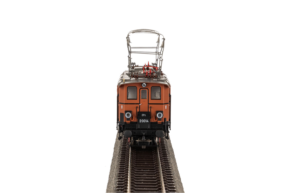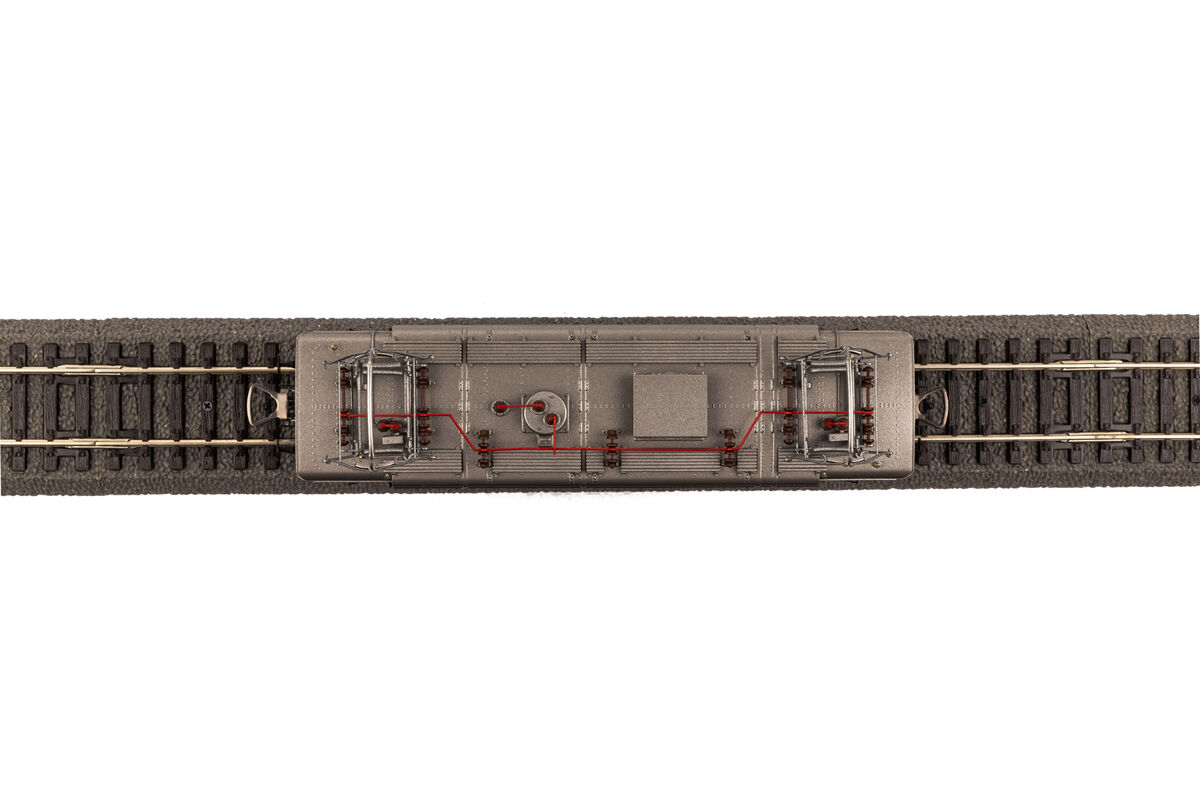 Neuheit 2023: Der Stangenantrieb der BR E 32 mit seinen Speichenrädern, in kurzer Bauform, lässt die Verwandtschaft der Altbau-Elloks zu den Dampfloks durchscheinen, mit 1’C1‘ Achsanordnung, wie beim Original. Das Modell entspricht dem Betriebszustand der Epoche III. Besonderheiten sind die fein zu erkennenden Detaillierungen, wie die Nietung am Dach, angesetzte Teile, wie Sandkästen, Glocke, Bremsschläuche und Handstangen. Zeitgenössische Lampen, sowie die filigranen Scherenstromabnehmer vom Typ SBS 10 runden das Modell optisch ab. Technisch weiß das Modell mit einem serienmäßig eingebauten Lichtwechsel in LED-Technik mit roter Schlussbeleuchtung zu begeistern. Für die unkomplizierte Nachrüstung eines Decoders steht auf der aufgeräumten Platine eine PluX22-Schnittstelle zur Verfügung. Die Formvariante gibt den Betriebszustand der EP2 der DR Gruppenverwaltug Bayern in Epoche II wieder.