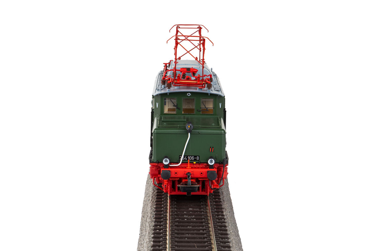 Das neue PIKO Modell der BR 254 gibt den Betriebszustand der frühen 1980er Jahre wieder. Markante Besonderheiten sind hierbei die freistehende Lampe am Vorbau mit der Nachbildung der Zuleitung, angepasste Steckdosen sowie Änderungen an den Regenrinnen. Abgerundet wird der positive Gesamteindruck durch die vorbildgerechte, saubere Lackierung und lupenreine Bedruckung.