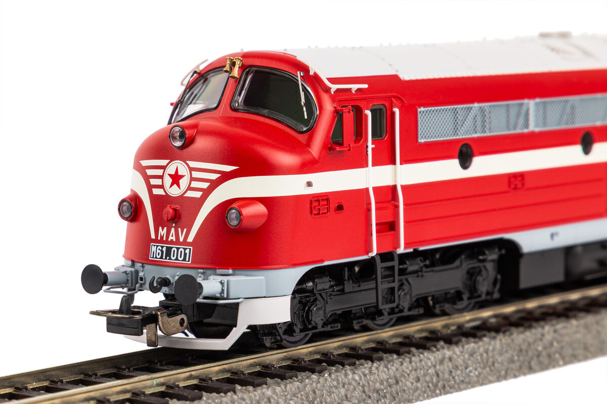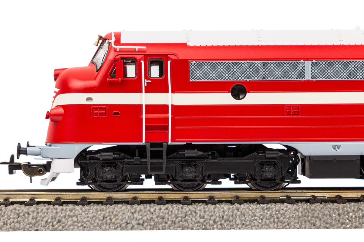 Neuheit 2025: Variante der Diesellokomotive NoHAB als M61 der MÁV in Epoche IV. Über Geschmack lässt sich trefflich streiten, es gibt jedoch Dinge, deren Eleganz über jeden Zweifel erhaben ist. Von der unbestrittenen Eleganz des Vorbilds dürfen auch die PIKO Modelle der NoHAB profitieren. Um diesen Gesamteindruck zu erreichen wurde großer Wert auf Details gelegt. Die seitlichen Lüftungsgitter werden als stark gliedernde Elemente des Lokkastens mit feinen Ätzteilen ausgeführt und sind ein absoluter Blickfang. Aber auch die markanten stirnseitigen Scheiben sowie die seitlichen „Bullaugen“ tragen durch den perfekt bündigen Sitz zum hervorragenden Bild bei. Vollendet wird der Eindruck durch die präzise und hochdetaillierte Gestaltung der Drehgestelle. Als Antrieb dient ein kräftiger und laufruhiger Motor mit zwei Schwungmassen. Die Soundvariante besitzt ab Werk einen PSD XP Sound-Decoder. Das Modell trägt das Gütezeichen fits mfx®. Um Digitaldecoder für alle Nutzer der aktuellen Märklin Digitalzentralen zuverlässig einsetzbar zu machen, wurde gemeinsam mit Märklin und anderen Herstellern ein neues Gütezeichen „fits mfx®“ eingeführt. Dieses kann nur von Digitaldecodern verwendet werden, die einen speziellen mfx®-Test durchlaufen und vollumfänglich bestanden haben. Diese Decoder und auch die Lokomotiven in denen sie verbaut sind, tragen das Gütezeichen „fits mfx®“, welches die uneingeschränkte mfx® Funktionalität zertifiziert. Das bedeutet, dass nunmehr auch PIKO Produkte mit dem „fits mfx®“ Logo die vielfältigen Funktionen von mfx® vollständig unterstützen.