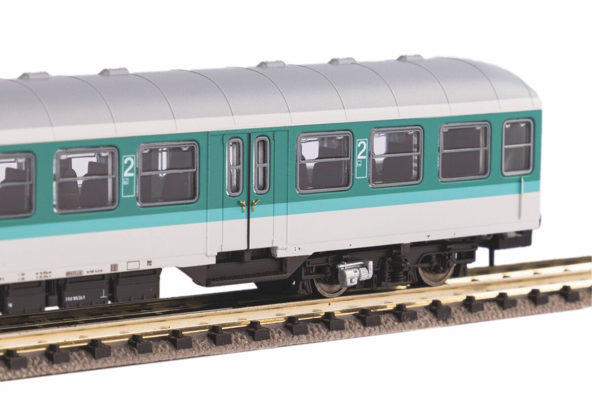 Neuheit 2022: Druckvariante des 2. Klasse Personenwagens der DB AG in mintgrüner Lackierung der Epoche V. Als Silberling wird unter Eisenbahnfans eine Familie von Nahverkehrswagen der Deutschen Bundesbahn bezeichnet. Den Namen „Silberlinge“ verdanken die Fahrzeuge ihrem Wagenkasten aus Edelstahl. Über 5000 Exemplare wurden zwischen 1961 und 1980 gebaut und waren bis Anfang 2020 bei DB Regio anzutreffen. Nach ihrem Nebengattungszeichen werden die Wagen auch gerne als n-Wagen bezeichnet. Mit den n-Wagen hat PIKO einen Fahrzeugtyp ins Sortiment aufgenommen, der praktisch auf keiner Modellbahn fehlen darf, deren Thema bei der Bundesbahn oder der DB AG angesiedelt ist. Wie beim Vorbild unterscheiden sich auch die Modelle abhängig von der Wagenklasse in Fensteraufteilung und Inneneinrichtung, die Stichmaße wurden vorbildgerecht in die Baugröße N umgesetzt. Formenbau auf höchstem Niveau sorgt für äußerst plastisch wirkende Drehgestelle und die von PIKO gewohnte hochwertige Lackierung und Bedruckung verleiht den Fahrzeugen ein hervorragendes Finish. Die Fahrzeuge sind für das unkomplizierte Nachrüsten einer Innenbeleuchtung vorbereitet.