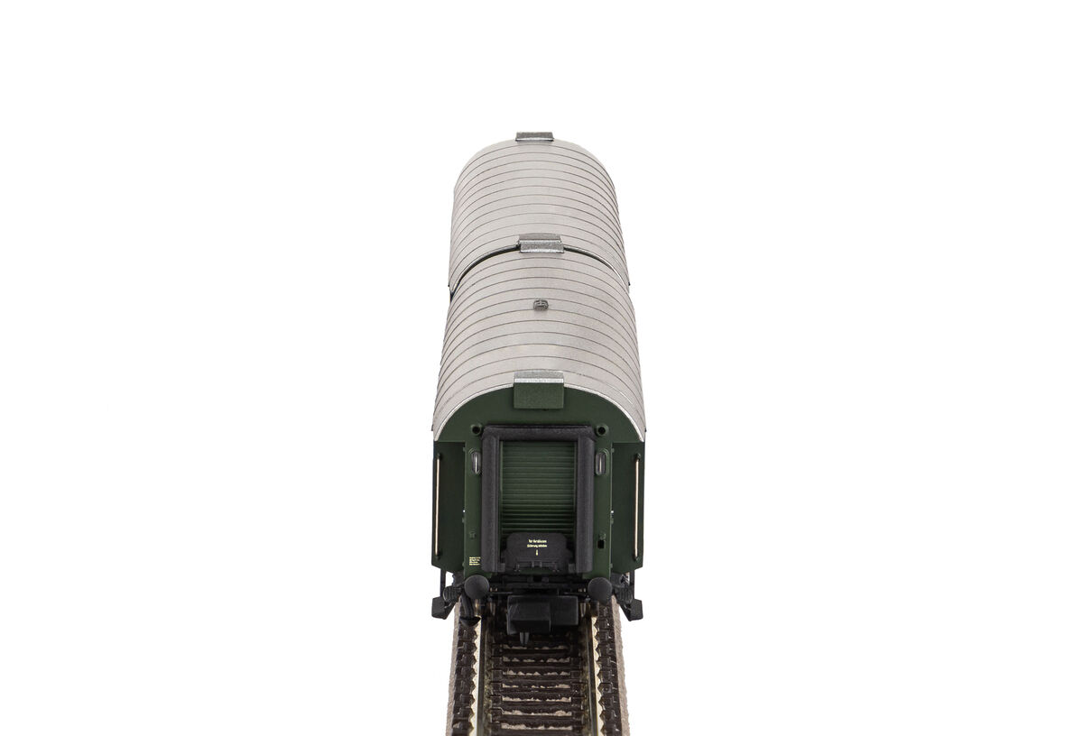 Neuheit 2024: Ab Mitte der 1950er-Jahre entstanden durch Umbau von Länderbahn-Abteilwagen bei der Deutschen Bundesbahn zwei Reisezug-Wagenserien, die als Umbauwagen bezeichnet werden. Anders als beim Vorbild wurde für die PIKO Modelle der dreiachsigen Umbauwagen nicht auf vorhandene Teile zurückgegriffen. Bei den Wagen handelt es sich um vollständige Neukonstruktionen. Die maßstäblichen Fahrzeuge geben das Original bis ins kleinste Detail wieder. Einzeln angesetzte Griffstangen gehören genauso zur zeitgemäßen Konstruktion wie bündig abschließende, glasklare Fenster und eine detaillierte Inneneinrichtung. Die liebevolle Gestaltung setzt sich am Wagenboden fort. Er überzeugt unter anderem durch freistehende Leitungen und ein filigranes Bremsgestänge. Wie das Vorbild erscheinen auch die N Umbauwagen als kurzgekuppelte Pärchen im Handel und verfügen über einen vorbildnahen Abstand zwischen den Wagen. Zusammen mit dem PIKO Lokomotivmodell der Baureihe E 32 (Art.-Nr. 40820) lassen sich vorbildgerechte Zugverbände bilden, die zum absoluten Blickfang auf jeder Anlage werden.