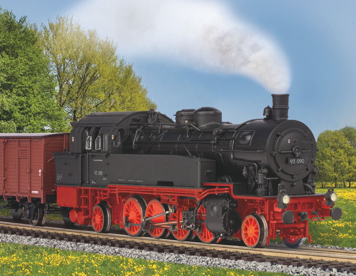 Neuheit 2023: Komplette Neukonstruktin der Dampflokomotive BR 93 im Maßstab 1:120! Die Analogversion verfügt über eine Next18-Schnittstelle für den unkomplizierten Einbau eines Digital- ode Sound-Decoders. Für die Soundnachrüstung steht zudem Platz für einen Lautsprecher mit maximaler Membranfläche zur Verfügung. In Preußen war man stets um Rationalisierung bemüht, sodass man in den späten 1910er-Jahren für die Konstruktion einer neuen Tenderlok auf bewährte Konstruktionsprinzipien zurückgriff. So wurden Teile von Trieb- und Laufwerk mit einigen Änderungen von der bewährten G8.1 übernommen. Die neuen Lokomotiven wurden als Reihe T14 eingegliedert. Insgesamt wurden 457 Exemplare für die Preußische Staatsbahn gebaut. Anschließend bestellten auch die Reichseisenbahnen in Elsaß-Lothringen 40 Loks dieses Typs. Nach dem Zweiten Weltkrieg war die Gattung 93.0–4 über Europa verstreut. Frisch instand gesetzt kam sie neben dem geteilten Deutschland auch in Polen, Belgien und Österreich wieder zum Einsatz. Die DB setzte ihre Maschinen bis 1960 ein, wobei das Bw Limburg und die Strecken zwischen Lahn, Dill und Sieg ihr letztes Refugium waren. Bei der DR währte der Einsatz noch bis 1971, hier kamen die Loks besonders in und um Berlin vor allem vor Güterzügen in Fahrt.Das Modell verfügt über TT Kurzkupplungen!